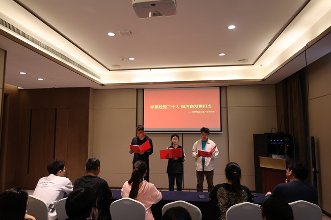 活動中,組織開展了以“學思踐悟二十大,踔厲奮發(fā)勇?lián)敗睘橹黝}的學習研討活動,安排黨務干部領學黨的二十大報告,年輕干部誦讀“黨的二十大金句”,紀檢、財務、技術、企管部門代表結合本職工作讀原文分享交流感悟等系列活動,最后一起觀看了小品《坑》。