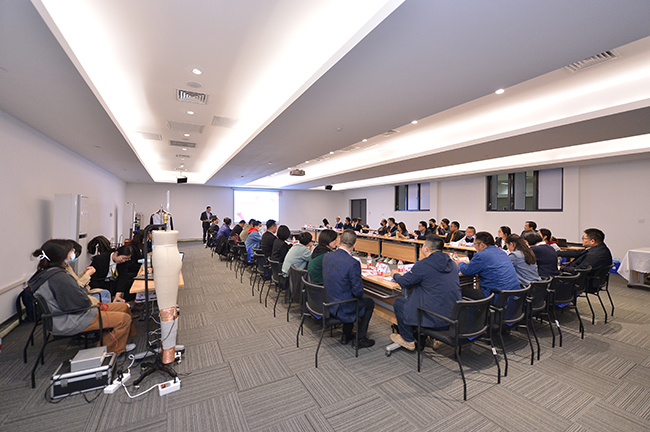 交流會上,杜鐘氨綸研發(fā)部曾登部長就奧神溫感形狀記憶氨綸的開發(fā)背景、產品特性以及應用前景作了深入解析。參會嘉賓在對溫感形狀記憶氨綸有了較為清晰的認知和了解后,圍繞該產品的功能特點并結合自身產品開發(fā)方向,展開了一場智慧碰撞,對溫感形狀記憶氨綸的創(chuàng)新應用提出了獨到的建議和暢想。