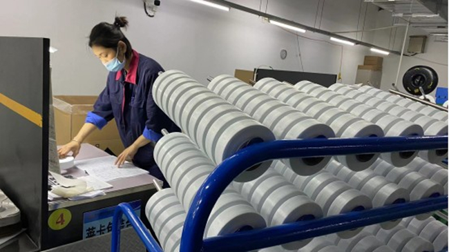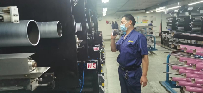 品保部全體員工積極配合公司疫情防控要求,挑選精兵強(qiáng)將駐廠保生產(chǎn)。從11月20日起,八期外檢開始包裝萊卡產(chǎn)品,外檢員嚴(yán)格按照萊卡的高標(biāo)準(zhǔn)高要求進(jìn)行產(chǎn)品包裝,仔細(xì)確認(rèn)每卷絲的各項(xiàng)外觀指標(biāo),認(rèn)真核對(duì)絲卷內(nèi)標(biāo)簽以及絲卷的數(shù)量,填寫相關(guān)報(bào)表,做到每個(gè)絲卷均可追溯。班長及統(tǒng)計(jì)員負(fù)責(zé)現(xiàn)場協(xié)調(diào)工作,指導(dǎo)打包人員按要求封箱、碼垛,做好內(nèi)外標(biāo)簽打印、數(shù)據(jù)整理分析工作。面對(duì)嚴(yán)格的包裝要求,八期萊卡包裝團(tuán)隊(duì)為保質(zhì)保量的完成包裝任務(wù)。連續(xù)幾天加班至凌晨,堅(jiān)守崗位、毫無怨言。