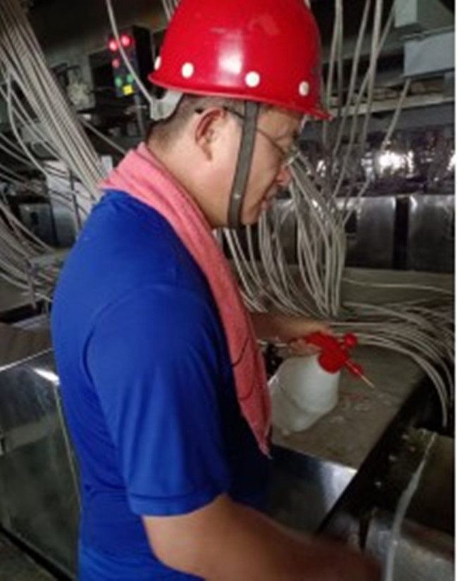 連日高溫悶熱天氣,幾乎讓人失去對溫度的判斷力。組件平臺的溫度每日高達50多度,員工站著不動都會不停出汗,更別提在平臺上進行操作了,每天幾乎都要濕幾遍衣服。