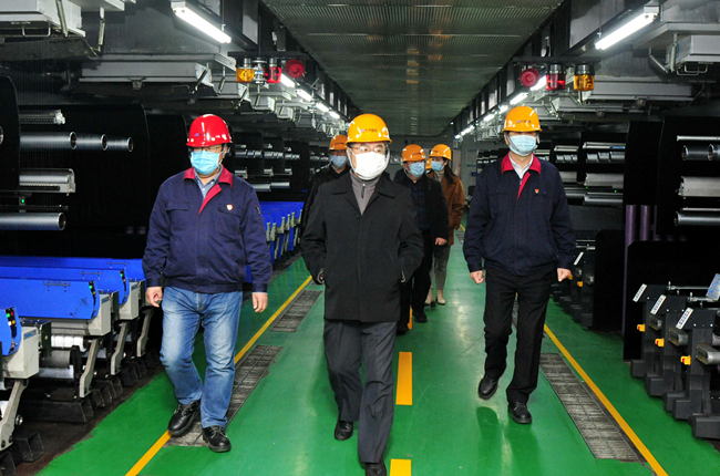 丁維杰一行參觀了展廳、八期生產(chǎn)線、自動包裝線。張斌總經(jīng)理詳細地介紹了杜鐘氨綸的發(fā)展歷程,公司近年來研發(fā)的功能性氨綸的主要特點以及后道產(chǎn)品的開發(fā)與銷售。在隨后的座談會上,又重點匯報了公司近年來“三鷹”計劃人才培養(yǎng)方面取得的良好成效。胡書記具體匯報了公司深化落實產(chǎn)改工作的一些舉措。劉主席介紹了集團層面上產(chǎn)改工作情況,他指出氨綸公司作為首批產(chǎn)改試點企業(yè),結(jié)合企業(yè)實際,不斷總結(jié)探索,創(chuàng)造很多可借鑒可復(fù)制可推廣的經(jīng)驗制度,發(fā)揮產(chǎn)業(yè)工人隊伍建設(shè)改革的示范引領(lǐng)作用。