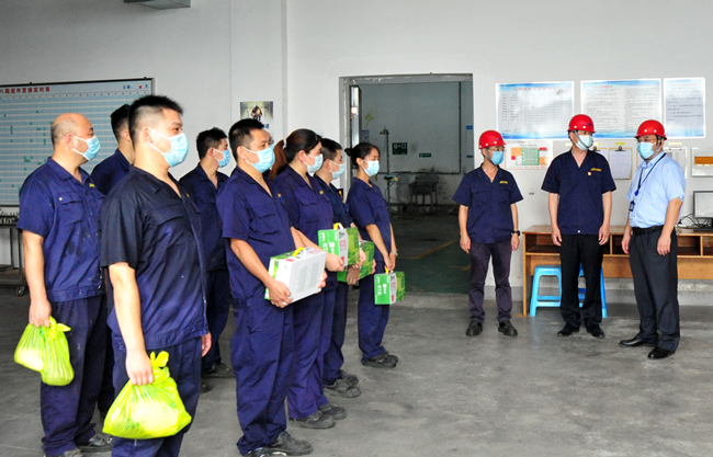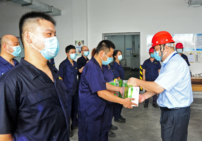 進(jìn)入盛夏以來持續(xù)高溫,為向堅(jiān)守崗位的一線職工表達(dá)敬意和關(guān)懷。82日上午,集團(tuán)黨委書記、董事長(zhǎng)楊龍一行人來我公司慰問高溫工作環(huán)境下的一線員工,公司黨委書記胡傳法、副總經(jīng)理張華衛(wèi)陪同。