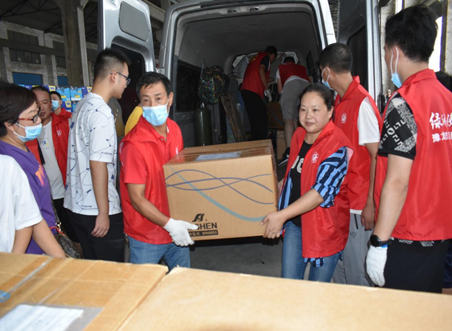 中午十二點,第一批物資捐贈后,顧不得吃飯我們就奔赴第二個捐贈點滎陽紅十字會。路上交警為我們耐心引導(dǎo),仔細說明哪里有塌方,哪里可以通行,臨行還貼心的留下微信號碼,囑咐道:在鄭州遇到困難隨時聯(lián)系。到達后不出意外的開始排隊,看著其他志愿者熱火朝天的忙碌,我和同行的小孫心里很不是滋味:我們千里迢迢帶著集團公司黨委和公司黨委的重托和港城人民的美好祝愿來到災(zāi)區(qū),我們不僅僅是要來捐贈物資,是不是也該做點什么?幾經(jīng)請示,紅會組織人員終于答應(yīng)了我們的請求,同意我們作為臨時志愿者加入搬運捐贈物資的隊伍。雖然大家已經(jīng)兩天沒合眼了,但是當(dāng)穿上志愿者馬甲后,我們頓時精神煥發(fā),立刻投入到緊張有序的搬運工作中。托舉起每一件來自祖國各地捐贈物資,心里都暖暖的,因為這里充滿了來自大江南北人們深深的祝福,激動的心情難以言表。此刻,我們對“眾志成城”有了更深刻的理解。