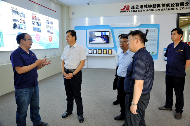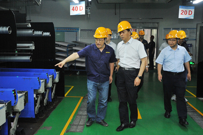 2021年6月23日下午,賈伊生常委領(lǐng)導(dǎo)一行來到氨綸公司指導(dǎo)調(diào)研,集團(tuán)常務(wù)副總經(jīng)理楊國新,氨綸公司黨委書記胡傳法、總經(jīng)理張斌等領(lǐng)導(dǎo)陪同。