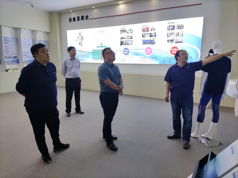 一行人先后參觀了公司展廳、八期生產(chǎn)線、自動化包裝線等。參觀過程中,公司總經(jīng)理張斌對我公司的發(fā)展歷程,差別化產(chǎn)品、戰(zhàn)略優(yōu)勢、積極開拓營銷渠道,創(chuàng)新運用新媒體傳播方式推進(jìn)商品銷售等進(jìn)行了詳細(xì)介紹。孫書記對我公司低溫?zé)嵴澈习本]、抗菌氨綸、驅(qū)蚊氨綸及氨綸生產(chǎn)全流程自動化、智能化生產(chǎn)線等給予了高度評價。希望雙方加強交流深化合作,攜手共創(chuàng)美好未來。