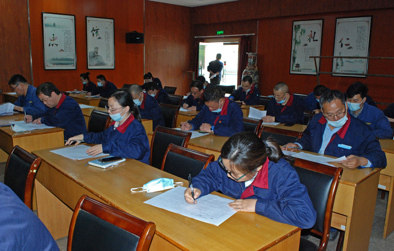 為嚴(yán)格落實“黨政同責(zé)、一崗雙責(zé)、失職追責(zé)”要求,全面提高公司管理人員的安全意識和法治觀念,切實履行安全生產(chǎn)職責(zé),做好安全生產(chǎn)工作。5月13日下午公司組織安全生產(chǎn)知識考試。公司管理層、管理部門負(fù)責(zé)人、生產(chǎn)部門負(fù)責(zé)人、助理、車間安全員等39人參加考試。
