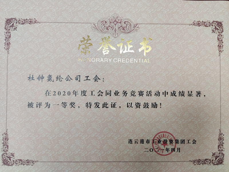 氨綸公司工會榮獲集團2020年度工會同業(yè)務競賽評比一等獎