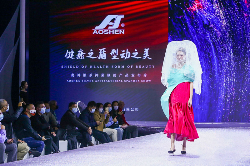 杜鐘新奧神氨綸公司總經(jīng)理張斌向大家介紹了公司的發(fā)展歷程,并隆重推出新產(chǎn)品——銀系抑菌氨綸,指出其在性價(jià)比、環(huán)保、安全等方面獨(dú)特的優(yōu)勢(shì)和市場(chǎng)前景。下游客戶代表紅豆童裝、福建東龍針紡分享了使用奧神抑菌、驅(qū)蚊等功能性氨綸產(chǎn)品的經(jīng)驗(yàn)和體會(huì),并表示將與杜新奧神氨綸開(kāi)展長(zhǎng)期的戰(zhàn)略合作。最后,精彩的模特走秀完美演繹了兩家合作公司聯(lián)合推出的最新款的時(shí)裝、童裝及瑜伽類運(yùn)動(dòng)服裝。