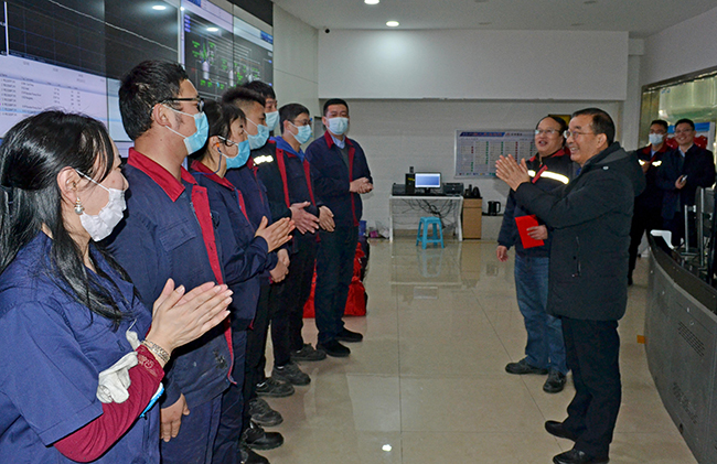 “過年了,你們還堅守在第一線,大家辛苦了。”2月12日,大年初一一早,陽光明媚,集團公司總經(jīng)理胡建明一行在公司總經(jīng)理張斌的陪同下來我公司,對春節(jié)期間堅守一線的員工們送上新年祝福和慰問品。