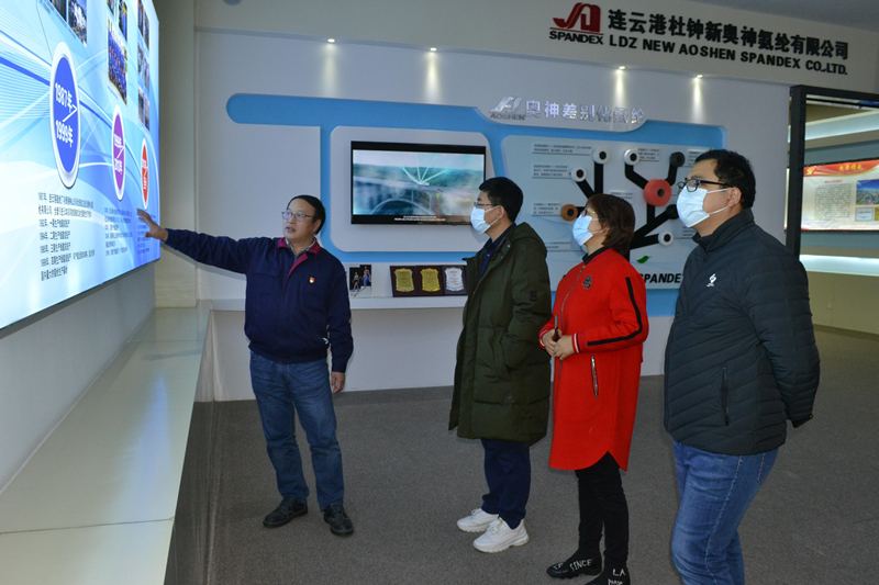 11月23日,國家紡織產(chǎn)品開發(fā)中心總工程師陳寶建一行來公司進(jìn)行國家差別化功能性氨綸開發(fā)基地的資質(zhì)實(shí)地考評(píng)工作。公司總經(jīng)理張斌等陪同考察調(diào)研。