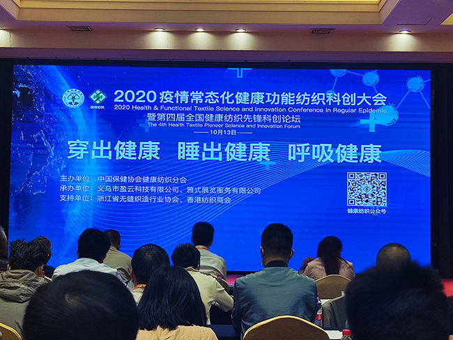 10月13日,由中國保健協會健康紡織分會主辦的“2020疫情常態(tài)化健康功能紡織科創(chuàng)大會暨第四屆全國健康紡織先鋒科創(chuàng)論壇”在浙江義烏舉行。公司總經理張斌參會并作了題為《健康功能氨綸開發(fā)和應用》的報告。