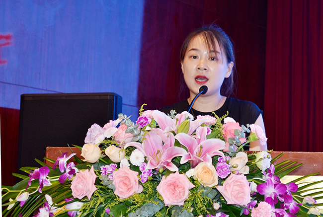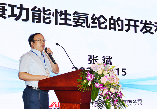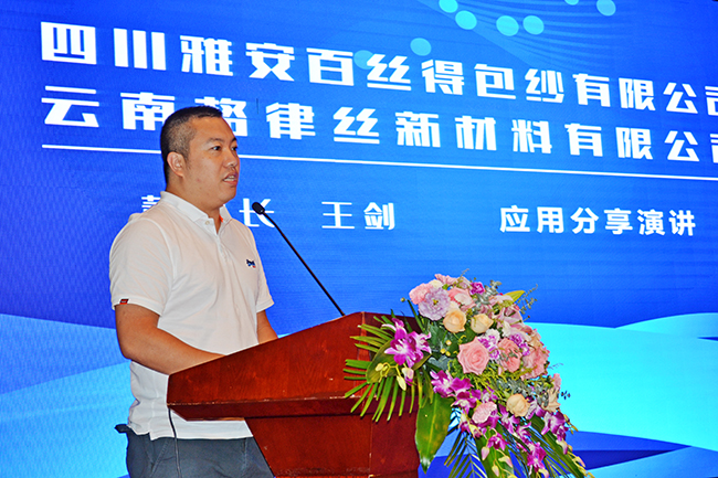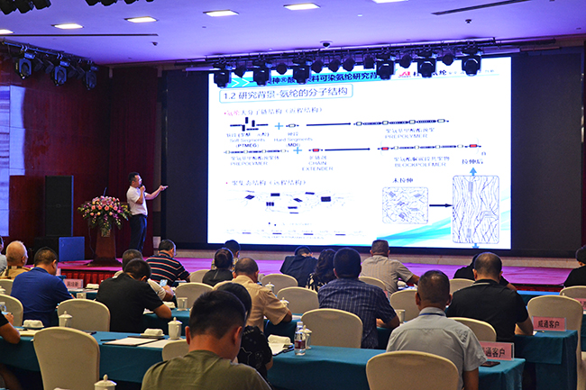 奧神氨綸研發(fā)部副部長曾登做了可染氨綸應(yīng)用方面的報告