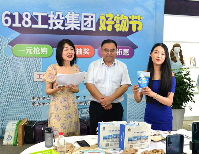 “618工投集團(tuán)好物節(jié)”活動在楊董事長熱情洋溢的致辭中拉開帷幕?;顒蝇F(xiàn)場,來自氨綸公司的多款抗菌系列服飾、驅(qū)蚊系列服飾、隨心裁系列服飾,青口投資公司的“鹽田玉”大米、金橋制鹽的雪花鹽,神特新材的高性能纖維涼席、枕套,奧神新材的甲綸PI超絕熱功能被等紛紛精彩亮相,活動中的抽獎環(huán)節(jié)將直播現(xiàn)場的氣氛不斷推向高潮。廣大觀眾與主播熱情互動,成交踴躍。
