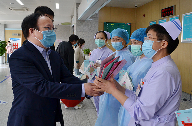 張斌總經(jīng)理表示,在全民共抗疫情的關(guān)鍵時期,廣大醫(yī)護工作者挺身而出,向險逆行,日夜奮戰(zhàn),向全世界展示了新時代中國醫(yī)護工作者的勇氣、智慧與擔當。我們希望能通過捐贈活動為連云港市第一人民醫(yī)院疫情防控工作貢獻一份力量,擔負起應(yīng)有的社會責任。