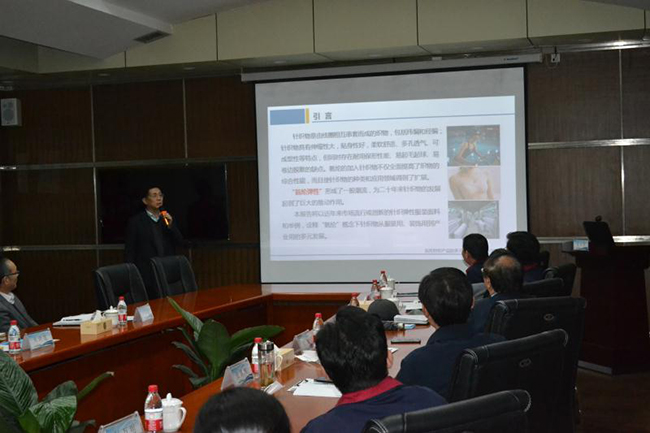 在隨后雙方進(jìn)行的交流會(huì)議上,叢教授介紹了針織中心科研項(xiàng)目、科研成果與產(chǎn)業(yè)化、多元化和國(guó)際化發(fā)展理念,蔣教授作了氨綸針織產(chǎn)品的多元化發(fā)展報(bào)告,雙方就合作事宜進(jìn)行了深入交流,大家對(duì)原液著色氨綸、可染易染氨綸、高回彈和超柔氨綸等高值化產(chǎn)品,抗菌防臭氨綸、芳香驅(qū)蚊氨綸等功能化產(chǎn)品及其下游產(chǎn)品開發(fā)等進(jìn)行了全面探討。張總與蔣教授共同表達(dá)了在功能化氨綸針織面料研發(fā)領(lǐng)域進(jìn)行深度開發(fā)與合作的意向,期待攜手共創(chuàng)針織行業(yè)輝煌。最后,雙方簽署了戰(zhàn)略合作協(xié)議。