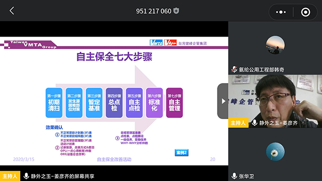 近日,氨綸公司全面落實疫情防控與復工復產(chǎn)“兩手抓”。疫情當前,為了避免培訓人員集聚,公司采取網(wǎng)絡授課的方式開展培訓,組織廣大職工開展了線上TPM培訓活動。