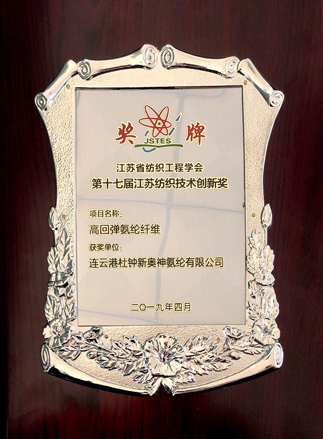 近日,經(jīng)企業(yè)申報、有關(guān)單位推薦和專家評審等流程,我公司高新技術(shù)產(chǎn)品“高回彈氨綸纖維”項目獲得第十七屆江蘇紡織技術(shù)創(chuàng)新獎。氨綸公司將以此為契機,大力弘揚“創(chuàng)業(yè)、創(chuàng)新、創(chuàng)優(yōu),爭先、領(lǐng)先、率先”的新時代江蘇精神,為建設(shè)強富美新江蘇和紡織強國作出新的貢獻。