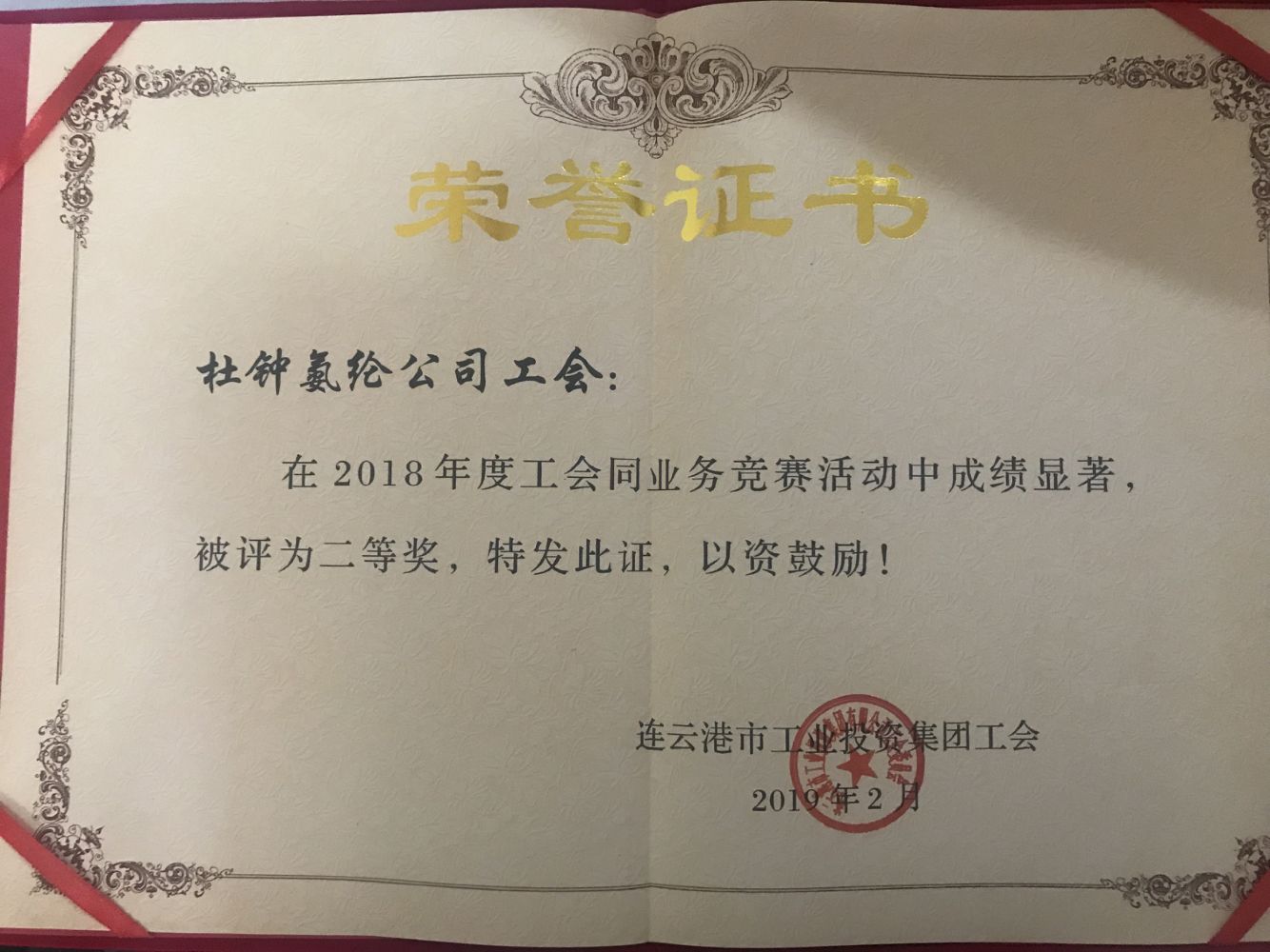 2月28日,在集團工會一屆九次全委(擴大)會上,氨綸公司榮獲“2018年度工會同業(yè)務(wù)競賽的二等獎”榮譽稱號。這是集團公司對我公司一年來工會工作的肯定。氨綸公司工會工作將以此為契機,進一步創(chuàng)新工作方法,推進公司工會工作邁上新臺階。