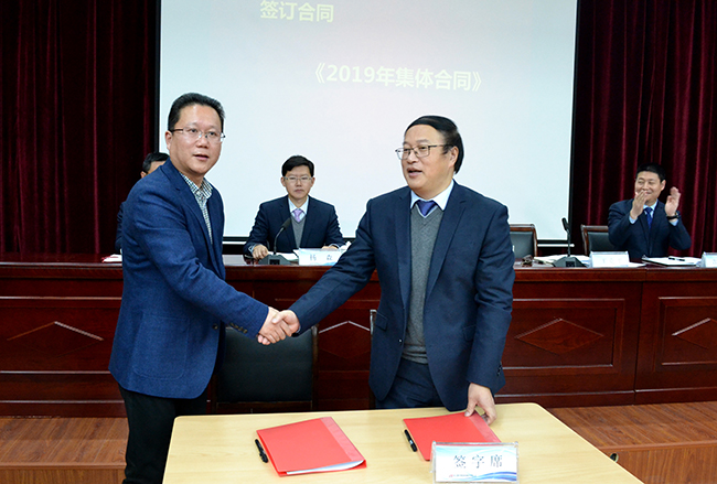會(huì)議共六項(xiàng)議程:奏國(guó)歌;總經(jīng)理張斌作《工作報(bào)告》;審議通過相關(guān)方案和意見;對(duì)2018年度優(yōu)秀集體和個(gè)人進(jìn)行表彰;簽訂《2019年集體合同》;職工代表作表態(tài)發(fā)言。