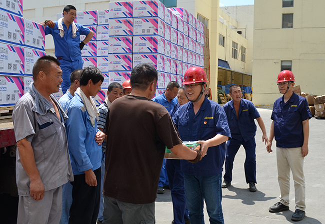 送清涼。今年七八月,我市持續(xù)高溫,氨綸公司工會(huì)牽頭辦公室向一線員工送防暑降溫用品,在炎炎夏日為一線員工送去雪糕、飲料、礦泉水等飲品和工會(huì)“娘家人”的問(wèn)候。食堂每日為員工提供綠豆湯、西瓜等夏季瓜果,讓一線工人們?cè)诳崾钪懈惺艿搅艘唤z舒心的涼意。為了防止高溫季節(jié)突發(fā)意外,公司安全部購(gòu)買藿香正氣水、人丹、風(fēng)油精、速效救心丸、燙傷膏、瀉立停等應(yīng)急藥品發(fā)放到各生產(chǎn)部門,為員工平安度夏做好預(yù)防工作,切實(shí)保障他們的身體健康。