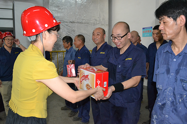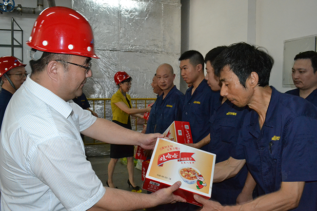 7月17日上午,集團公司董事長楊龍、紀(jì)委書記汪群一行來氨綸公司慰問奮戰(zhàn)在高溫下的一線員工,為他們送去綠豆、牛奶、八寶粥、解暑藥等防暑降溫慰問品。在詳細詢問了防暑降溫各項保障工作的落實情況后,楊龍董事長叮囑大家要合理安排工作時間,避開高溫時段,確保身體健康和安全生產(chǎn)。氨綸公司總經(jīng)理張斌、副書記王克平陪同慰問。
