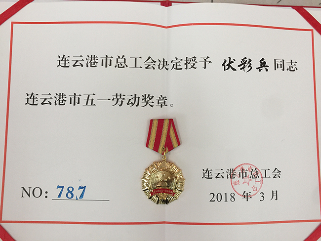 伏彩兵同志1992年進入氨綸公司維修部,從事電焊工作至今已有三十余年,先后被授予“先進生產者”、“操作能手”、“技能大師”等榮譽,2018年2月獲得連云港市職工先進操作法一等獎、連云港市職工科技創(chuàng)新成果二等獎;他的“一種高效氨綸原液過濾裝置”、“一種薄銅管泄漏的堵漏裝置”兩項發(fā)明獲得國家實用新型專利證書。2018年3月被連云港市總工會授予“連云港市五一勞動獎章”。