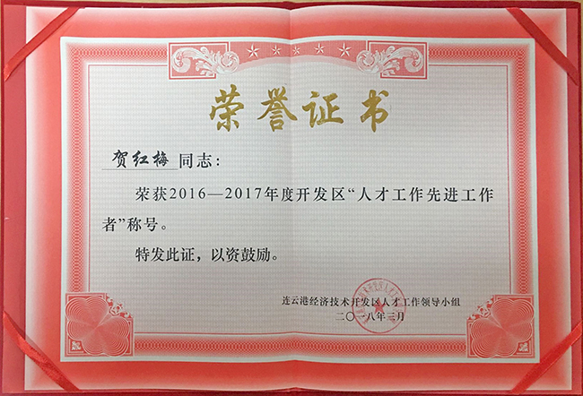 近日,在開(kāi)發(fā)區(qū)2016—2017年度人才工作會(huì)議上,氨綸公司獲得“2016—2017年度人才工作先進(jìn)單位”、公司人力資源部賀紅梅獲得“2016-2017年度開(kāi)發(fā)區(qū)人才工作先進(jìn)工作者”榮譽(yù)稱號(hào)。