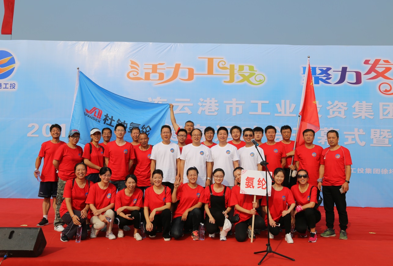 2017923日,連云港市工業(yè)投資集團第一屆職工運動會開幕式暨健步走項目在徐圩云湖路南廣場舉行。集團董事長楊龍、總經理胡建明、工會主席戴鴻鳴等集團領導出席此次活動。氨綸公司全體領導與30名員工共同參加了此次活動。