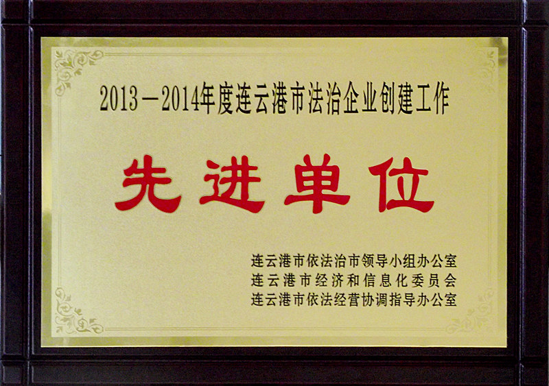 10月29日連云港杜鐘新奧神氨綸有限公司在全市深化法治企業(yè)創(chuàng)建工作推進(jìn)會(huì)上榮獲“2013-2014年度連云港市法治企業(yè)創(chuàng)建工作先進(jìn)單位”光榮稱(chēng)號(hào),系全市30家獲獎(jiǎng)單位之一。