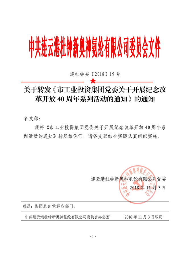 關(guān)于轉(zhuǎn)發(fā)《市工業(yè)投資集團(tuán)黨委關(guān)于開(kāi)展紀(jì)念改革開(kāi)放40周年系列活動(dòng)》的通知