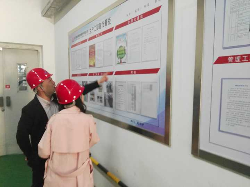 考察組一行實(shí)地考察了我公司廠區(qū)宣傳欄、展廳、七期生產(chǎn)現(xiàn)場、食堂、道德講堂、辦公樓等現(xiàn)場,對公司創(chuàng)建文明單位氛圍營造工作進(jìn)行了檢查,隨后在公司一號(hào)會(huì)議室聽取了我公司文明單位申報(bào)工作情況匯報(bào)并查閱了相關(guān)臺(tái)賬資料。