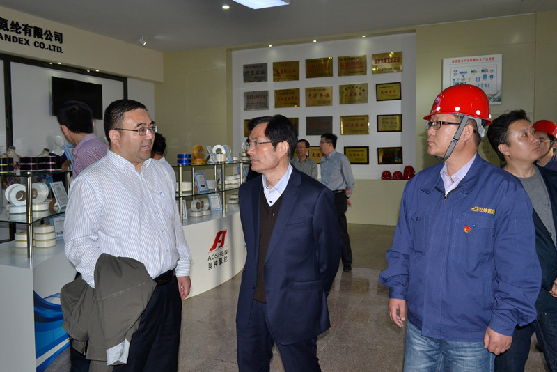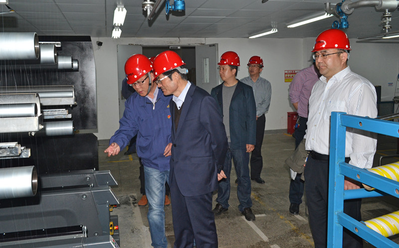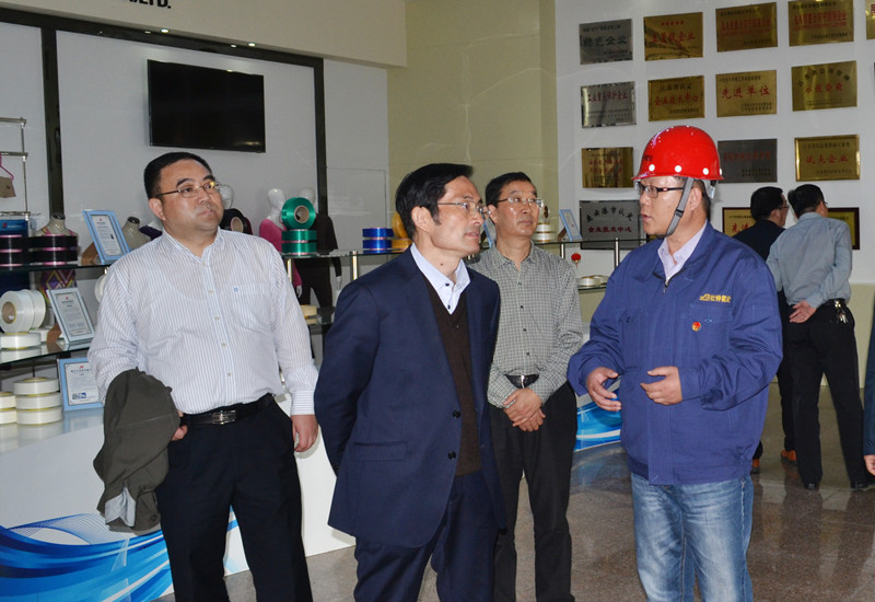 徐丙超主任一行先后參觀了公司展廳、七期生產(chǎn)現(xiàn)場、倉庫等地,聽取了企業(yè)介紹,并饒有興趣地詢問了解了關(guān)于氨綸生產(chǎn)工藝、流程、市場、應(yīng)用等方面的信息。