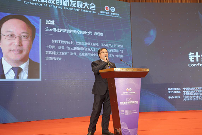 124日,由中國紡織工程學(xué)會針織專業(yè)委員會、無錫市科協(xié)主辦,江南大學(xué)針織技術(shù)教育部工程研究中心、無錫市紡織工程學(xué)會承辦的2020針織科技創(chuàng)新發(fā)展大會在無錫舉行,奧神®氨綸公司總經(jīng)理張斌帶隊參加了本次大會,并作題為《健康功能性氨綸的開發(fā)和應(yīng)用》的報告。