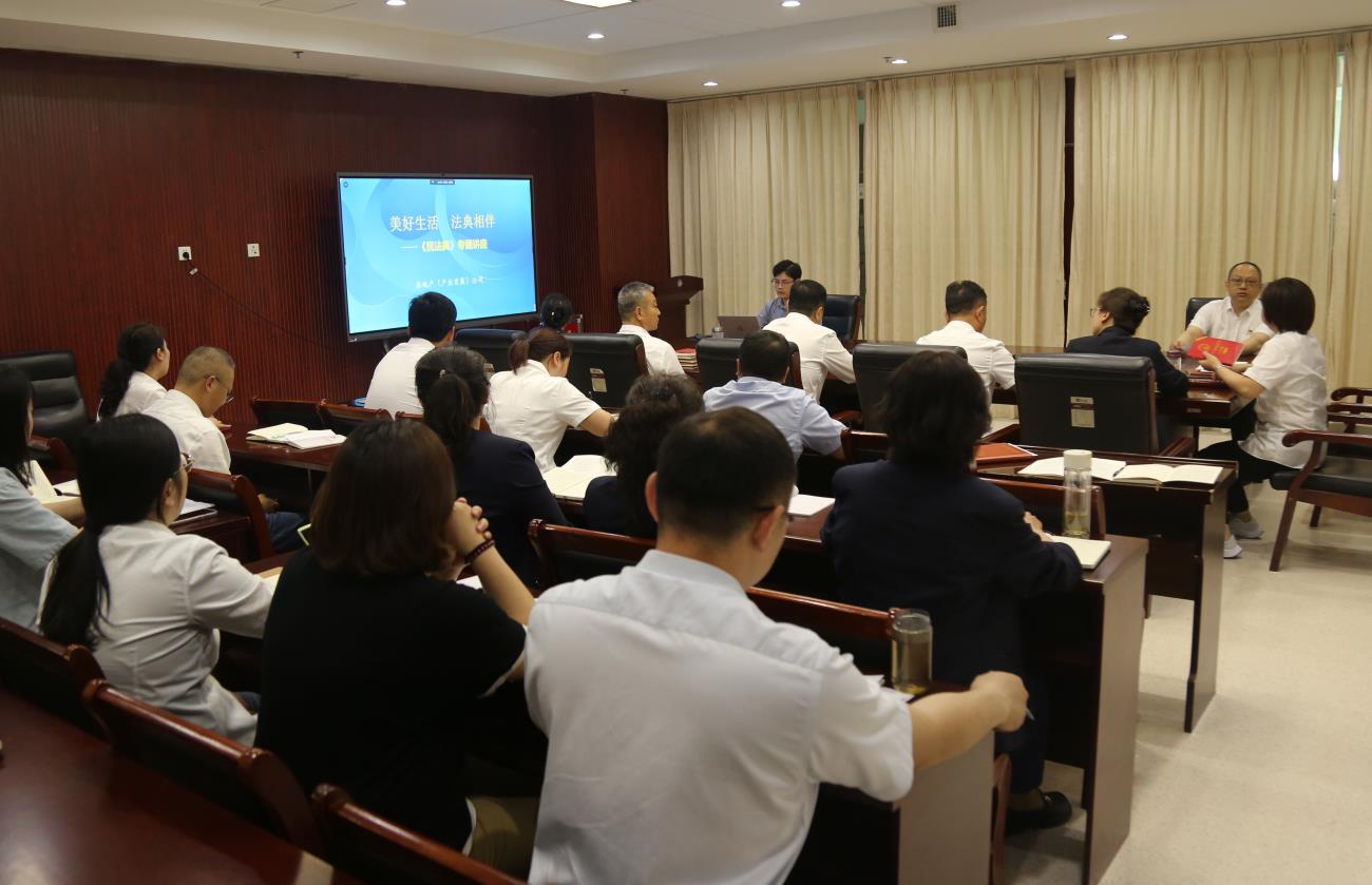 為進(jìn)一步民法典學(xué)習(xí)宣傳教育走深走實(shí),引領(lǐng)企業(yè)依法合規(guī)經(jīng)營(yíng),提升企業(yè)員工法治意識(shí)和法治理念,5月24日,公司邀請(qǐng)江蘇田灣律師事務(wù)所朱峻鋒律師進(jìn)行專題講座,圍繞民法典的重要性、基本概況和基本原則、部分法條的理解與運(yùn)用來(lái)展開(kāi)。公司領(lǐng)導(dǎo)班子成員、廣大職工30余人參加本次活動(dòng)。
