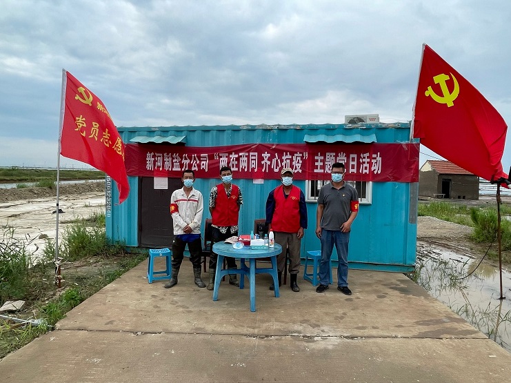 新河制鹽分公司根據(jù)投資公司黨委安排,在零班二期設(shè)立卡點,嚴(yán)格落實領(lǐng)導(dǎo)干部24小時帶班、值班和疫情突發(fā)狀況報告等制度,支部亮旗、黨員亮徽、職工亮力,共同織就公司疫情防控網(wǎng)。一個支部就是一座堡壘,一名黨員就是一面旗幟,全公司黨員紛紛亮出身份,主動請纓,沖鋒在前,放棄假期積極投身最需要的地方,用行動踐行初心使命,全力打好這場疫情防控阻擊戰(zhàn)?。ㄐ潞狱h支部)