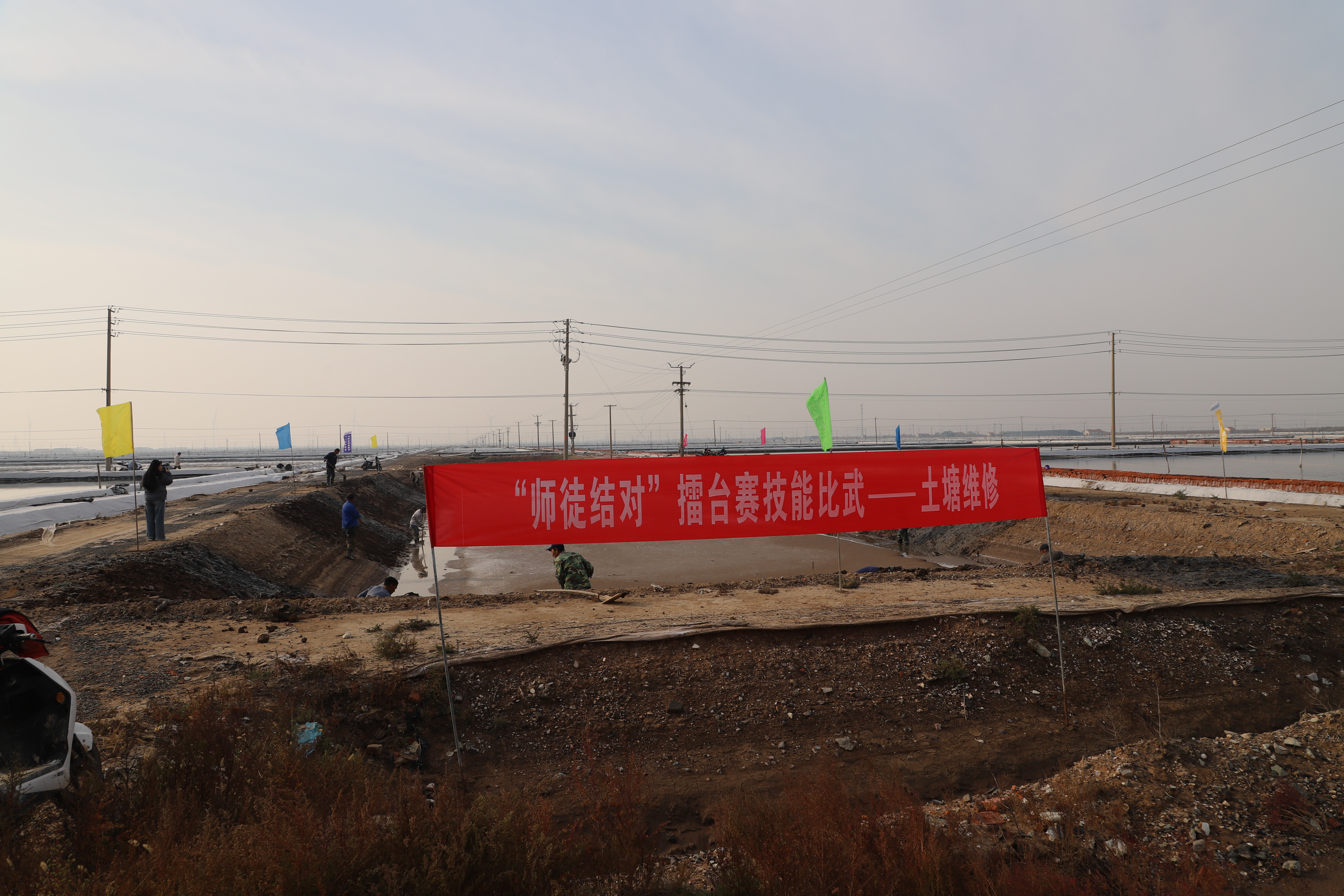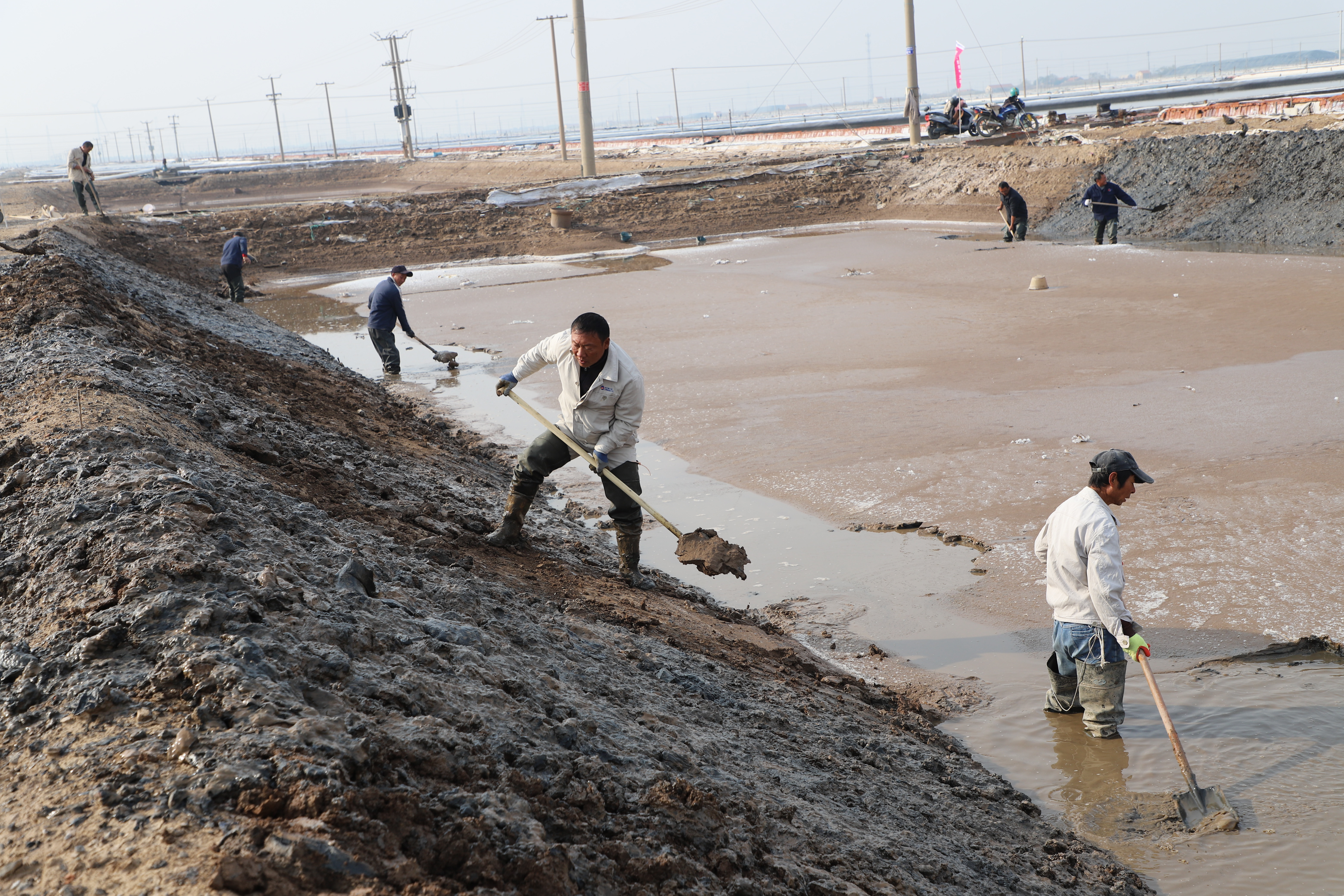 寒冬時(shí)節(jié),暖陽之下,鹽廩之旁,曬得黝黑的鹽場產(chǎn)業(yè)工人們按照競賽的考核標(biāo)準(zhǔn),做熟泥、打堰墻、做堰頂,護(hù)埝頂、夯埝坡、清塘底,由此,見證了一場技能比拼的盛會。