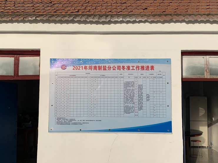 冬季是日曬制鹽收儲鹵水、扒土塘、整理灘場文明的最佳時期,也是為2022年工作起好頭、邁好步的關鍵時期,為更好落實“冬準”大會會議精神,12月6日上午,埒南制鹽公司制定冬準工作推進表,張貼在公司辦公區(qū)域墻面上,成立“指揮部”掛圖作戰(zhàn),打好冬準戰(zhàn)役促。