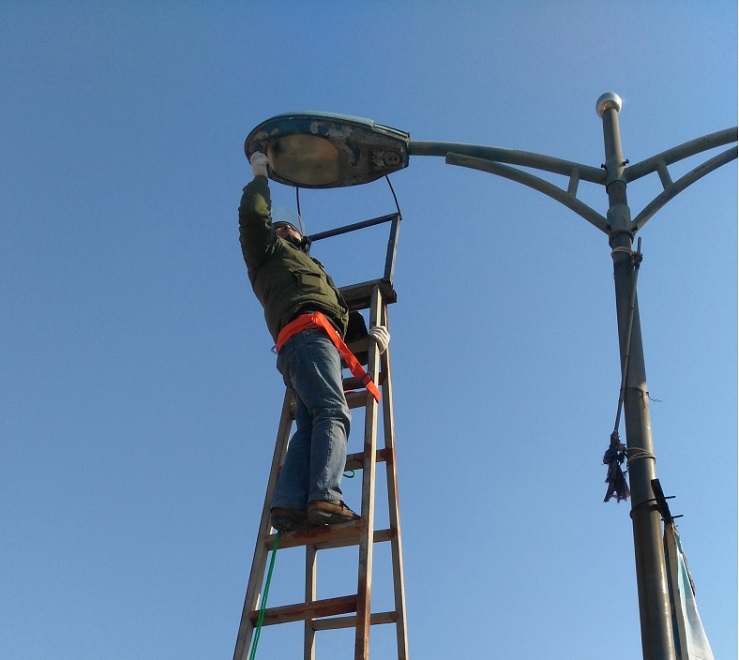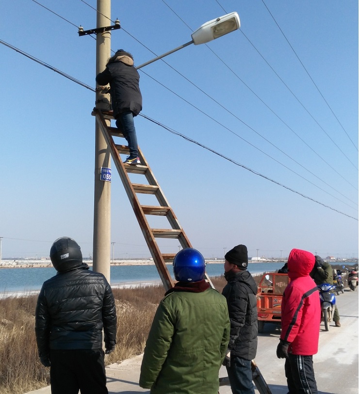 為增添節(jié)日氣氛,亮化場(chǎng)區(qū),機(jī)械設(shè)備服務(wù)中心接到場(chǎng)區(qū)及日曬鹽道路路燈維修任務(wù)后,班子成員高度重視,認(rèn)真組織,積極籌備維修配件,并結(jié)合天氣形勢(shì),對(duì)需要修理的60盞路燈,采取分段實(shí)施的辦法,于1月25日開(kāi)始,他們本著安全第一的原則,搶時(shí)間爭(zhēng)速度,對(duì)日曬鹽道路路燈展開(kāi)維修工作,繼而對(duì)場(chǎng)區(qū)中二圩街道路燈進(jìn)行維修,職工們不畏嚴(yán)寒,加班加點(diǎn),到1月31日將全部路燈維修結(jié)束。(圖為修理現(xiàn)場(chǎng))