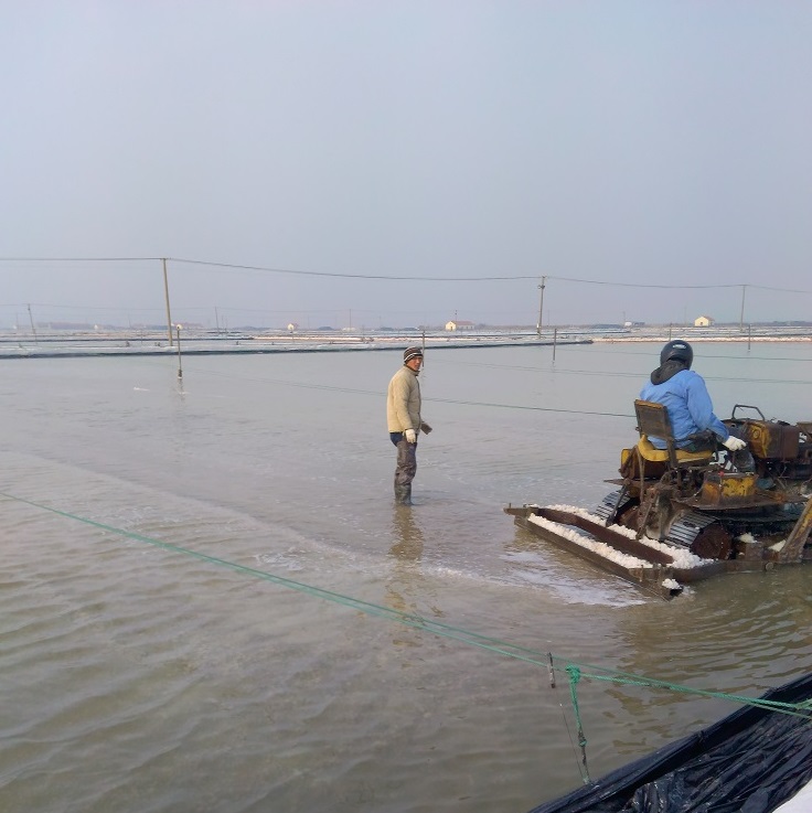 埒南制鹽分公司抓緊做好池鹽破碴工作,為即將開始的春季扒鹽作好準(zhǔn)備,利用5臺唐30對去年下半年未參加扒鹽的格塊進行機械破碴,目前已經(jīng)破碴70%以上。圖為職工利用唐30在池內(nèi)破碴。(埒宣)