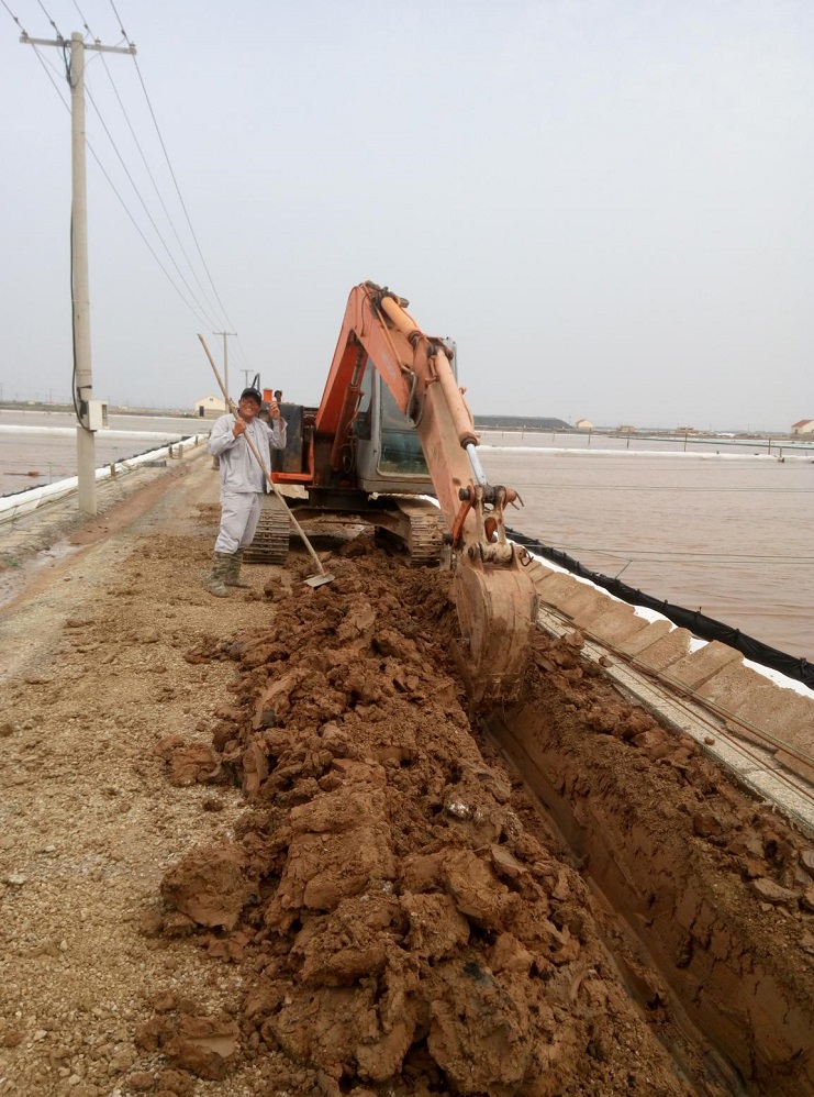 埒南制鹽分公司8班,伴隨著挖掘機(jī)的轟鳴,日曬制鹽公司生產(chǎn)班組“天溝工程”正式進(jìn)入施工試驗階段。天溝是海鹽生產(chǎn)的配套設(shè)施,在結(jié)晶區(qū)利用天溝加鹵能有效的減少鹵水的混雜,實行分質(zhì)分段結(jié)晶,是提高原鹽質(zhì)量的重要手段。日曬制鹽公司經(jīng)過反復(fù)調(diào)研論證,用傳統(tǒng)海鹽生產(chǎn)工藝架接礦鹵生產(chǎn),在生產(chǎn)班組架設(shè)天溝,實施串聯(lián)、并聯(lián)加鹵相結(jié)合,給鹵水的調(diào)配、除硫、除混帶來便利,實現(xiàn)分質(zhì)分段結(jié)晶,為原鹽質(zhì)量的提高寫下了重重的一筆,同時天溝加鹵可以減少班組流動機(jī)泵的使用頻率,提高了班組整體安全生產(chǎn)系數(shù)。