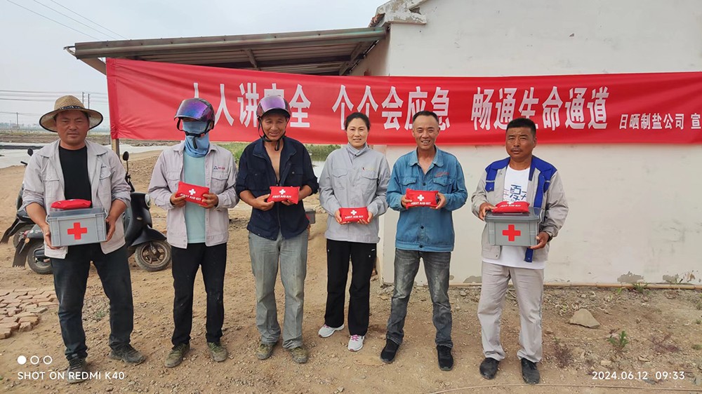 為切實(shí)保障職工在高溫季節(jié)戶外作業(yè)時(shí)的身體健康和安全,同時(shí)做好公司全體職工人人講安全,個(gè)個(gè)會(huì)應(yīng)急的要求。612日上午,海水鹽生產(chǎn)基地開展了防暑藥箱及個(gè)人應(yīng)急包發(fā)放活動(dòng)。