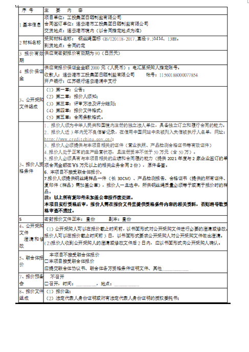 連云港市工投集團(tuán)日曬制鹽有限公司鋼絲繩采購項(xiàng)目