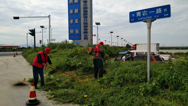 為了加大環(huán)境衛(wèi)生整治力度,保障創(chuàng)文工作高效有序進(jìn)行。8月16日泰祥公司全體黨員放棄休假日來到十六圩青口場(chǎng)標(biāo)志牌處清理草坪柴草并清運(yùn)出垃圾物,連日來持續(xù)的高溫,火辣辣太陽(yáng)照得人睜不開眼。高溫下,大家不怕強(qiáng)烈的太陽(yáng)光暴曬,主動(dòng)拿起草坪機(jī)、鐮刀等工具進(jìn)行割除柴草,經(jīng)過數(shù)個(gè)小時(shí)奮戰(zhàn)將草坪內(nèi)柴草、垃圾全部清除干凈,有力地促進(jìn)創(chuàng)文達(dá)標(biāo)工作順利進(jìn)行。 (趙新勇)