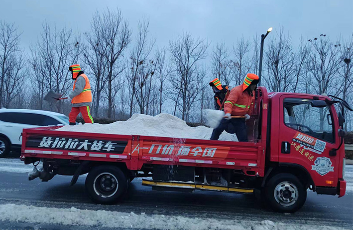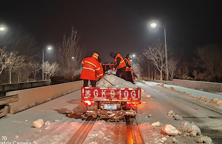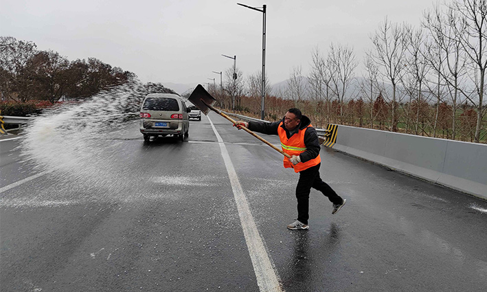 20日至21日,該分公司百余突擊隊員齊心協(xié)力、以雪為、迅速破、無懼風寒、不分白天與夜晚,持續(xù)工作10個多小時,仍然堅守道路最前沿。黨員先鋒張學軍、薛明柱、楊靜、石峰、朱海勇等同志更是率先垂范,黨員模范作用有力得以彰顯。到目前為止共人工撒放融雪鹽斤80多車,600多噸。
