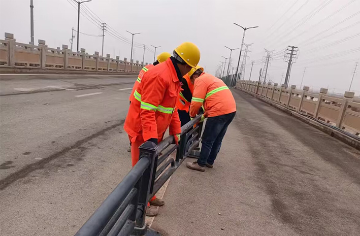 道路養(yǎng)護班組根據多日來梳理形成的問題清單,制定切實可行的維修方案,確保安裝質量和進度。在蘇海路維修更換老款護欄時,為了達到全路段護欄設施的整體性、連續(xù)性、統(tǒng)一性,養(yǎng)護人員積極作為,對先前更換拆下的老款護欄進行合理利用,相對完好的,用于同款護欄的補換及用于日后臨時應急道口封控保障等。