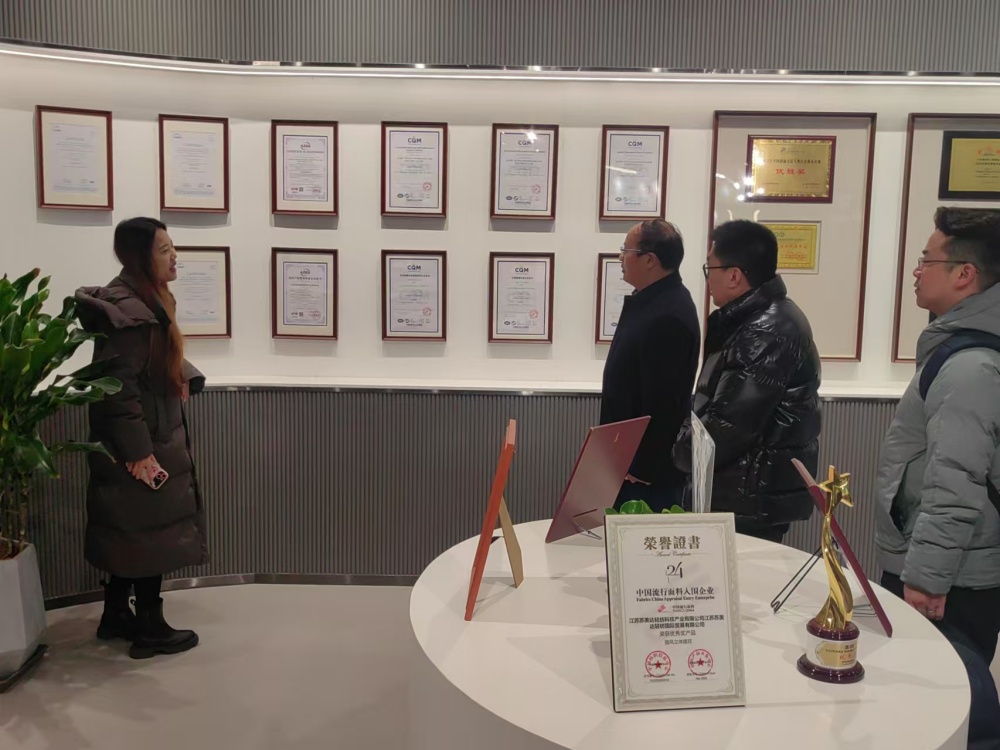 2024年12月31日上午,杜鐘氨綸公司董事長張斌帶領(lǐng)公司銷售部、研發(fā)部和技術(shù)部一行5人赴蘇美達(dá)輕紡公司科創(chuàng)中心進(jìn)行參觀,就OMINA?(奧美南?)生物基彈性纖維應(yīng)用開發(fā)與推廣進(jìn)行了交流與對接,蘇美達(dá)輕紡公司科創(chuàng)中心主任孫永祥等6人參加交流與對接活動。
