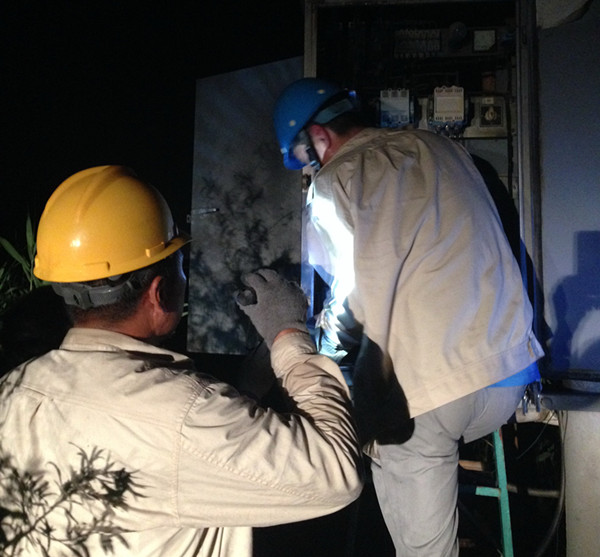 8月4日晚,因氣溫高天氣悶熱用電負(fù)荷大,青口供電所從19點至21點報修電話是接連不斷:二十圩變壓器起火停電,十七圩配電箱起火停電,十四圩配電箱底座起火停電,勝利圩配電箱跳閘停電,由于多處停電,并且故障難度大,為了能盡快的恢復(fù)供電,副所長李衛(wèi)田親自帶領(lǐng)三班人員進行搶修,家居縣城的王建,下班在家的霍如軍和楊同善,他們接到搶修任務(wù)后立即趕到搶修現(xiàn)場,他們克服了天氣炎熱,蚊蟲叮咬,天黑工作難度大等困難,奮戰(zhàn)五個小時,四處停電地方全部搶修完畢,恢復(fù)供電。(宋中文)
