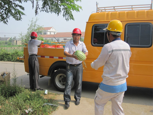 驕陽(yáng)似火,酷暑難當(dāng)。近日,青口供電所領(lǐng)導(dǎo)班子帶著西瓜、毛巾、礦泉水等防暑降溫物品,深入接戶線改造現(xiàn)場(chǎng),為一線職工送去一份關(guān)懷、一份情誼、一份清涼。同時(shí)希望他們面對(duì)持續(xù)的高溫天氣要做好防暑降溫和安全防護(hù)工作,防止中暑事件的發(fā)生。(王學(xué)忠)
