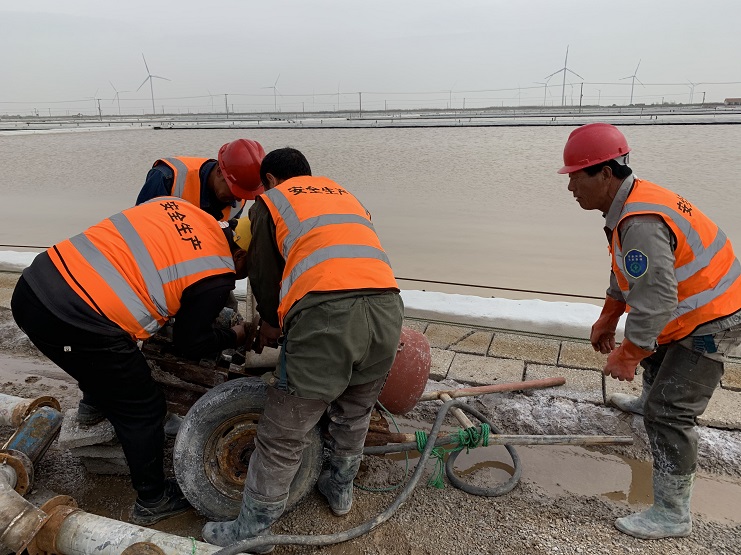首先,從扒鹽現(xiàn)場的交接班著手,要求交接班前的第一項工作就是填好交接班表,要時刻把安全放在第一位,無論做什么,時刻謹記著安全。其次,每次統(tǒng)機前,參扒人員牢記扒鹽的注意事項,統(tǒng)一分工后各司其職有序開展。最后,從扒鹽的設(shè)備著手,對配電箱、大泵、集鹽機進行一次隱患排查,對易損壞處以及危險源再一次進行告知。