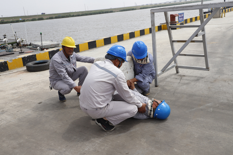 為抓好安全管理各項(xiàng)工作,全面落實(shí)以“消除事故隱患,筑牢安全基礎(chǔ)”為主題的全國“安全生產(chǎn)月”活動。6月22日,宵洋物流公司在碼頭舉行砸人事故和中暑事故應(yīng)急救援演練活動。投資公司領(lǐng)導(dǎo)和灌云縣交通局相關(guān)人員參加觀摩。